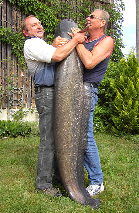 Er ist Stammgast bei der Familie Posl am Regen und weiß, dass der Regenabschnitt dort ein Paradies ist für gewichtige Fische. Doch so ein Fang war auch für ihn außerhalb des Vorstellbaren: Vor ihm lag nach einstündigem, schweißtreibenden Drill ein Waller, der 105 Pfund wog und 2,04 Meter lang war.